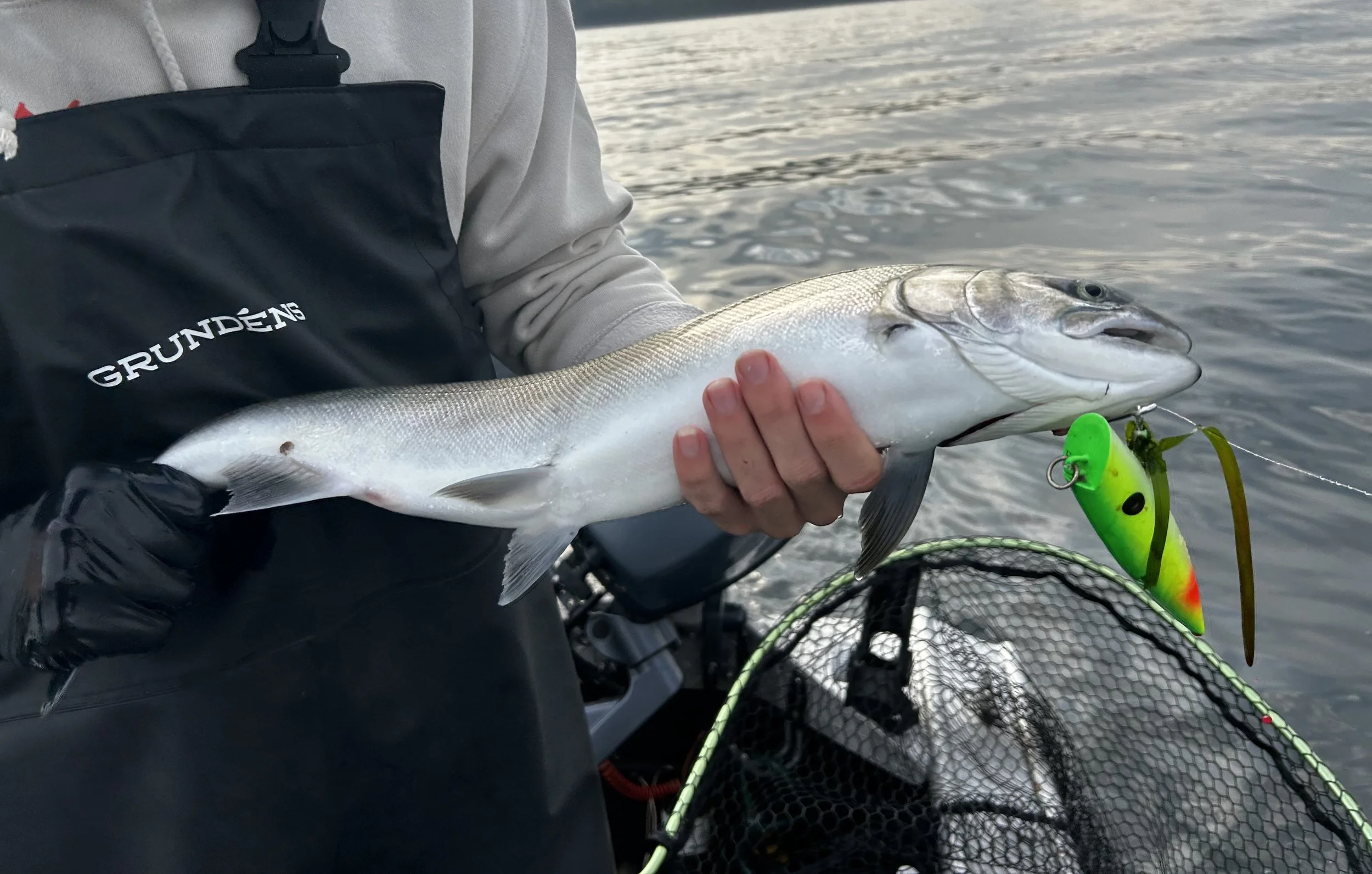 We fished only YBC Cut Plugs: Pink and White, Blue Silver, and Seahawk