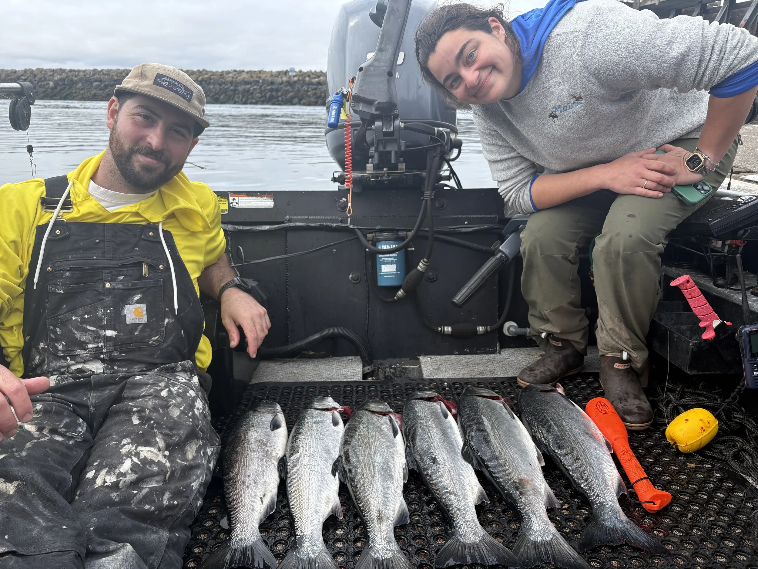 Last day of the steelhead season for us. River at 45 deg. Sunny and ~60 outside. Fifth boat in at the hatchery, with around 4 or 5 more to follow behind us throughout the day. Two beautiful hens in the first third of the section. Both hammered the plugs in slow, deep water. Sad to think the season is over, but what a season it was. It changed Teagan and I’s lives altogether, and I believe we will spend the rest of our days learning and exploring this fishery. Fish I am holding measured 35in and the one Teagan is holding came in at 34in. Both had battle wounds from seal encounters.
