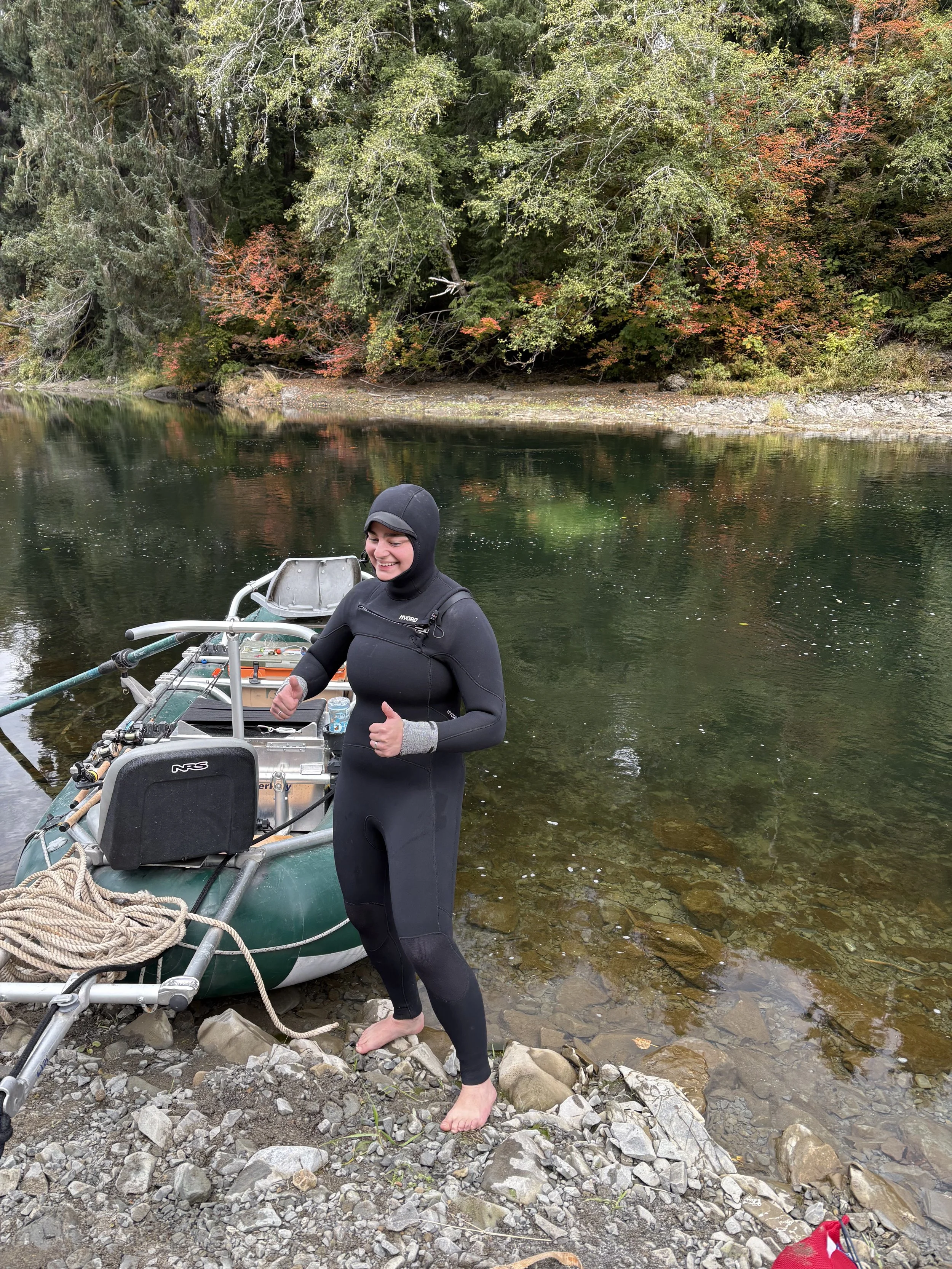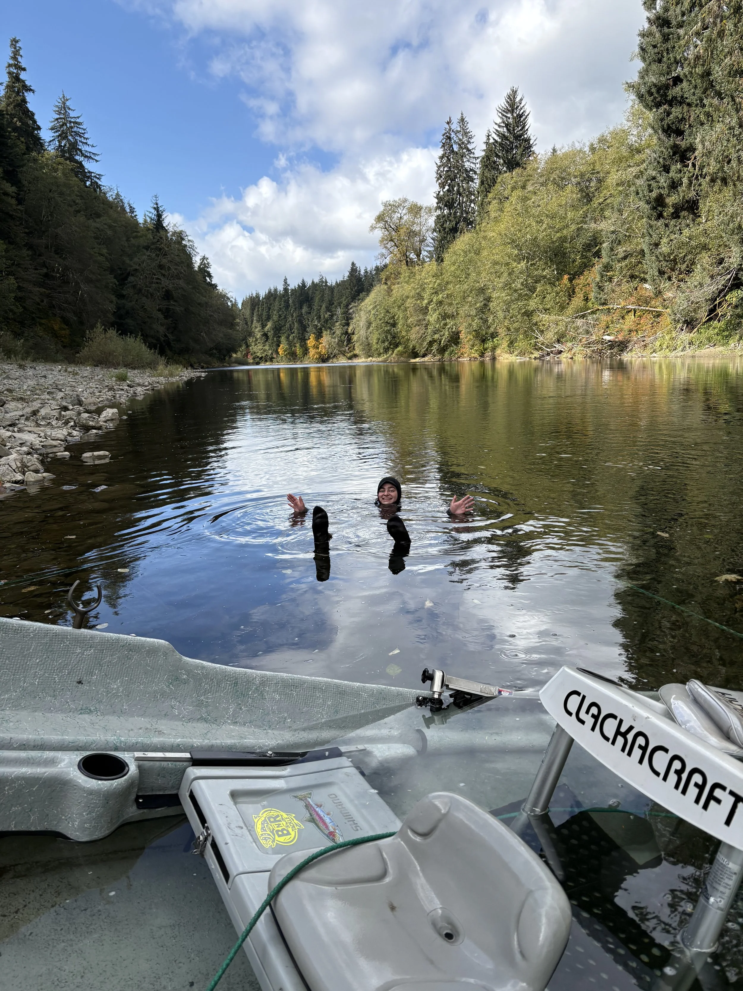 As I write this on October 19th, a day after dropping the boat off for minor repairs and even some improvements in Oregon, I still am having a hard time processing the events told in this post and the previous one. We were so lucky to survive that event. We learned many invaluable lessons that others may have not been fortunate enough to survive to practice. I learned that even at the lowest of lows, I will not quit rowing and fishing. I will not stop exploring and interacting with these capitally important rivers. I will wear my freaking life jacket, and those in my boat will do the same. I will not underestimate the structural integrity of a Clackacraft floor. I will wear my wading belt tight, and so will those in my boat. I have the coolest fiance in the world. The fact that she dove 10 feet down in the Bogachiel River in October to hook a line onto a sunken drift boat that ultimately leads to its recovery is a feat that very few, if any ever accomplish.